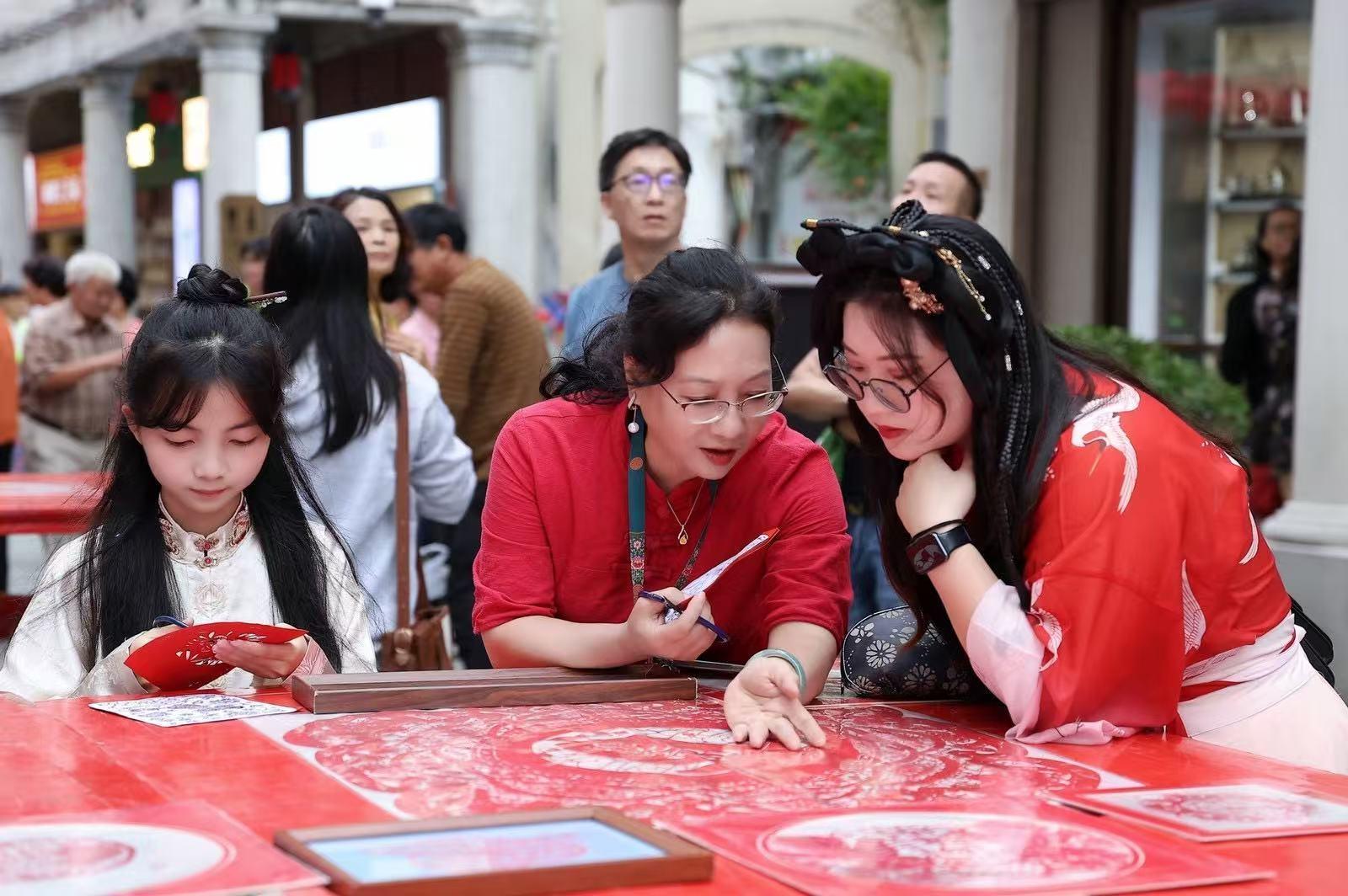 魏惠君深知,剪紙不僅是傳統(tǒng)技藝,更是地方文化的瑰寶。多年來,她不僅在潮陽文化館公益藝術培訓班進行授課,帶動中小學生學習剪紙技藝,還走進學校、社區(qū),舉辦剪紙講座和體驗活動,讓更多的年輕人了解和喜愛這門傳統(tǒng)藝術。每月她還會到曠園社區(qū)老年活動中心進行公益剪紙授課,滿足多年齡段居民對文化生活的需求。