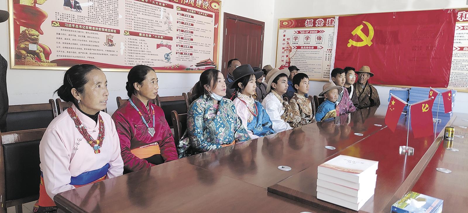 “走啊扎西,去村委會聽課去!”村民田桑斗吆喝著村民走向新時代文明實踐站。