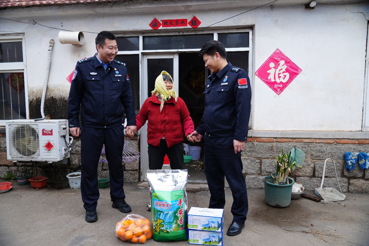 在第62個(gè)“學(xué)雷鋒紀(jì)念日”來臨之際,3月4日下午,山東出入境邊防檢查總站董家口邊檢站民警來到泊里鎮(zhèn)尹家圈村,為結(jié)對(duì)幫扶的71歲老人董翠蓮送去大米、牛奶、水果等慰問品,以實(shí)際行動(dòng)踐行新時(shí)代雷鋒精神。
