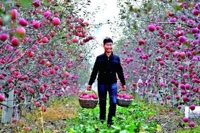 延安市安塞區(qū)南溝村村民張杰在果園搬運蘋果。祁小軍 攝