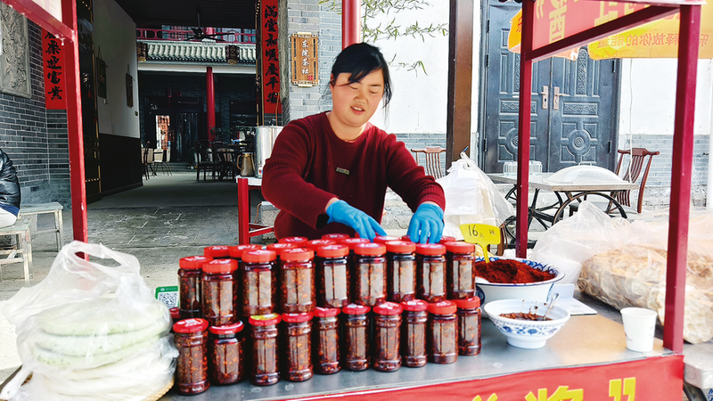 “現(xiàn)在真是大變樣!”鄭翠擦著餐桌感慨道,“我一個(gè)普通農(nóng)民,本是給孩子做的辣醬,竟然得到這么多人的認(rèn)可,這讓我非常開(kāi)心?!?023年,村上免費(fèi)組織村民學(xué)習(xí)抖音短視頻拍攝,岳綿綿親自幫助她。鏡頭里既有辣子鍋盔的制作過(guò)程,也有青訓(xùn)班舊址的紅色故事。如今這家不足200平方米的農(nóng)家樂(lè),自從“觸網(wǎng)”后,本著薄利多銷的原則,依靠品質(zhì)和服務(wù),游客翻了一番,自制辣醬年銷售額常常供不應(yīng)求。