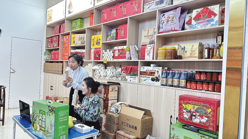 4月2日,農(nóng)家樂(lè)負(fù)責(zé)人鄭翠正在打包游客要的辣醬。