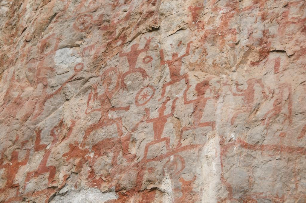 景區(qū)講解員介紹,花山巖畫面積8000多平方米,有各種圖像1900多個,創(chuàng)作于戰(zhàn)國至東漢時期,距今已有兩千多年的歷史。2016年被列入《世界遺產名錄》,填補了中國巖畫類世界遺產空白。