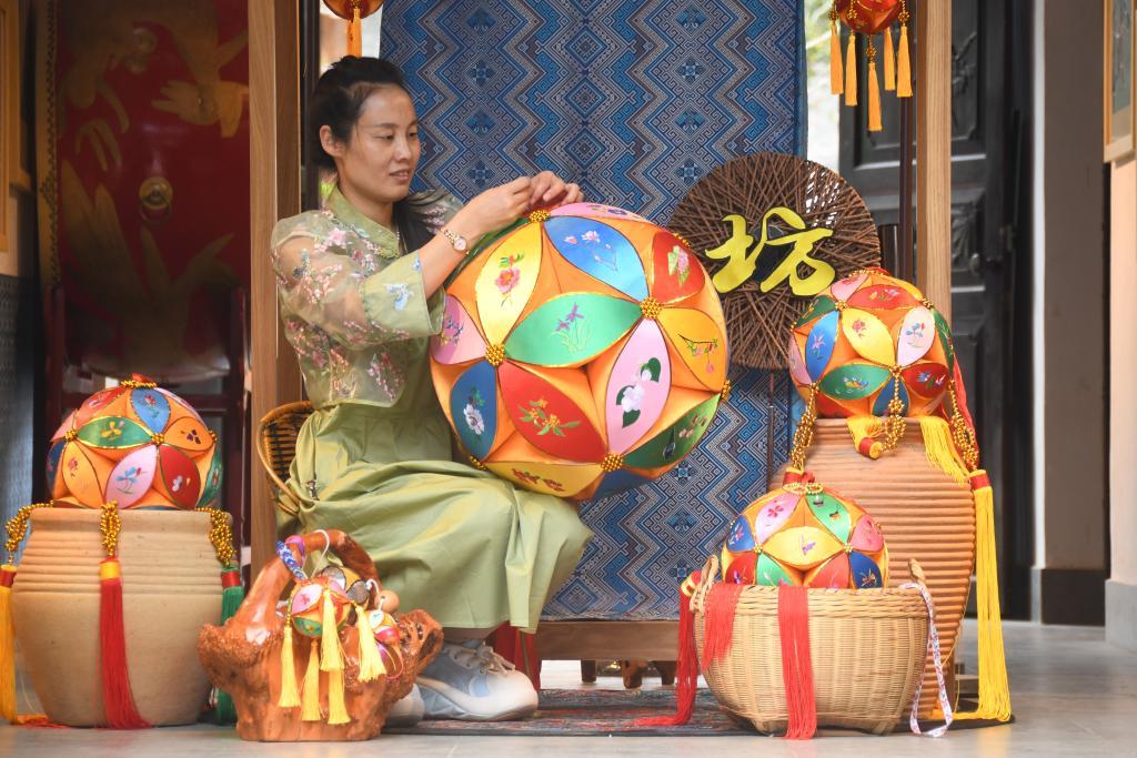 王秀芬如今已成為繡球制作技藝的市級非遺傳承人。談起繡球文化,王秀芬似乎有說不完的話?!袄C球在古代是男女之間的定情信物。比如在‘三月三’,青年男女們會對唱山歌,通過拋繡球的方式傳遞愛意。”王秀芬捧著一個大大的繡球笑著說,“發(fā)展到今天,繡球已經成為友誼和祝福的象征?!?/p>