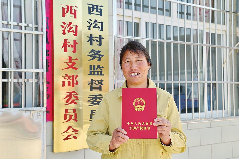 首批拿到林權(quán)不動產(chǎn)權(quán)證書的龍泉鎮(zhèn)西溝村林農(nóng)王安青喜笑顏開。