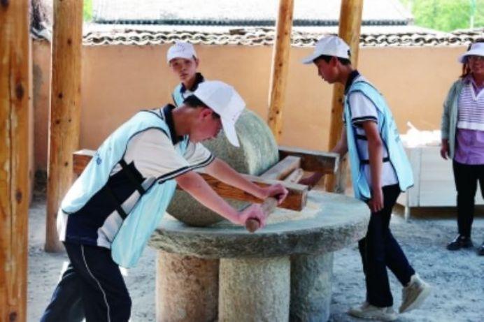 神玉村的名氣越來越響,許多研學團也紛至沓來。記者到訪時,180多名黃龍縣初級中學初二的學生正在神玉村開展研學活動,他們動手磨豆?jié){、包餛飩、生火做飯,感悟“一粥一飯,當思來之不易”的道理。