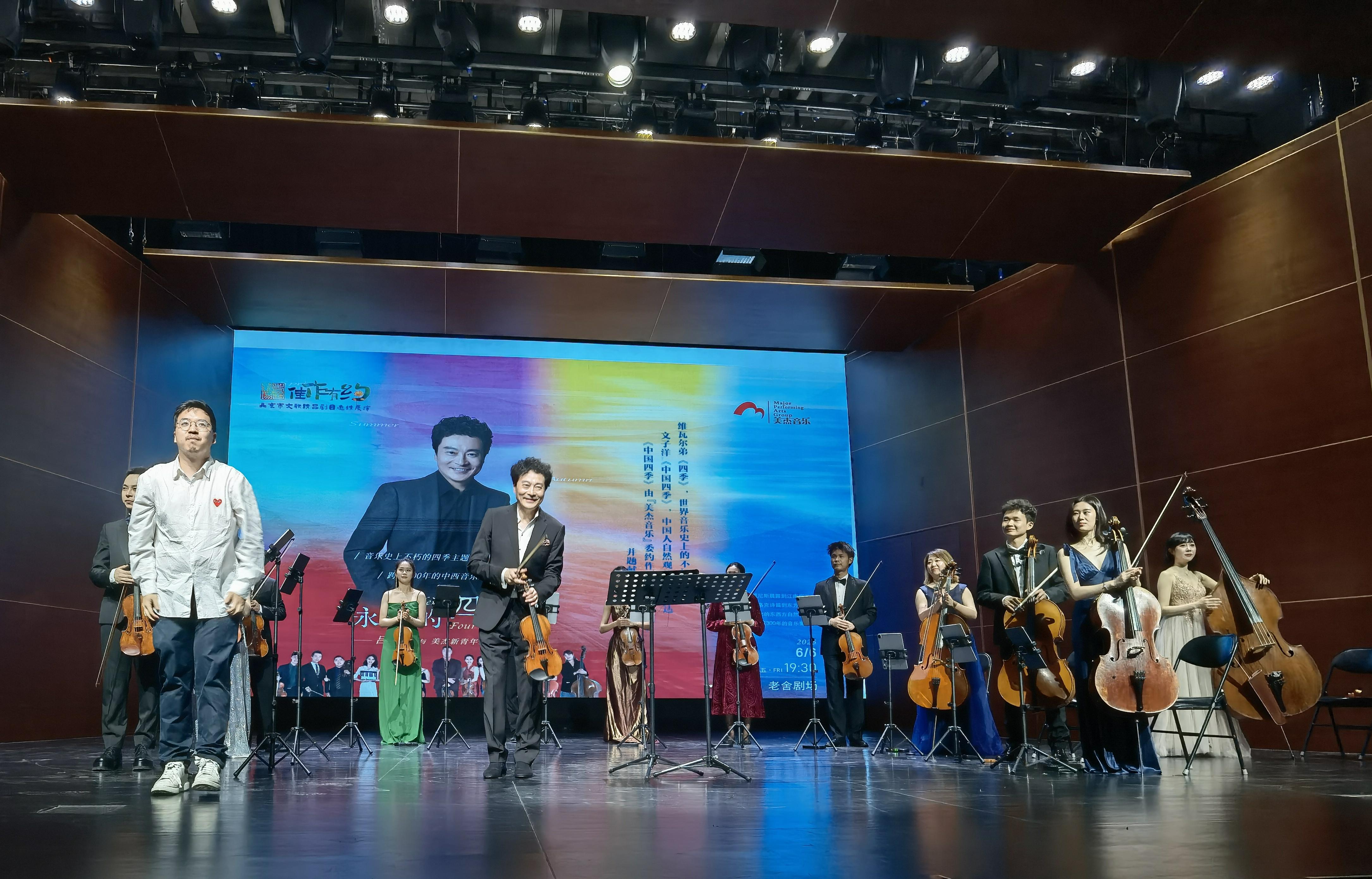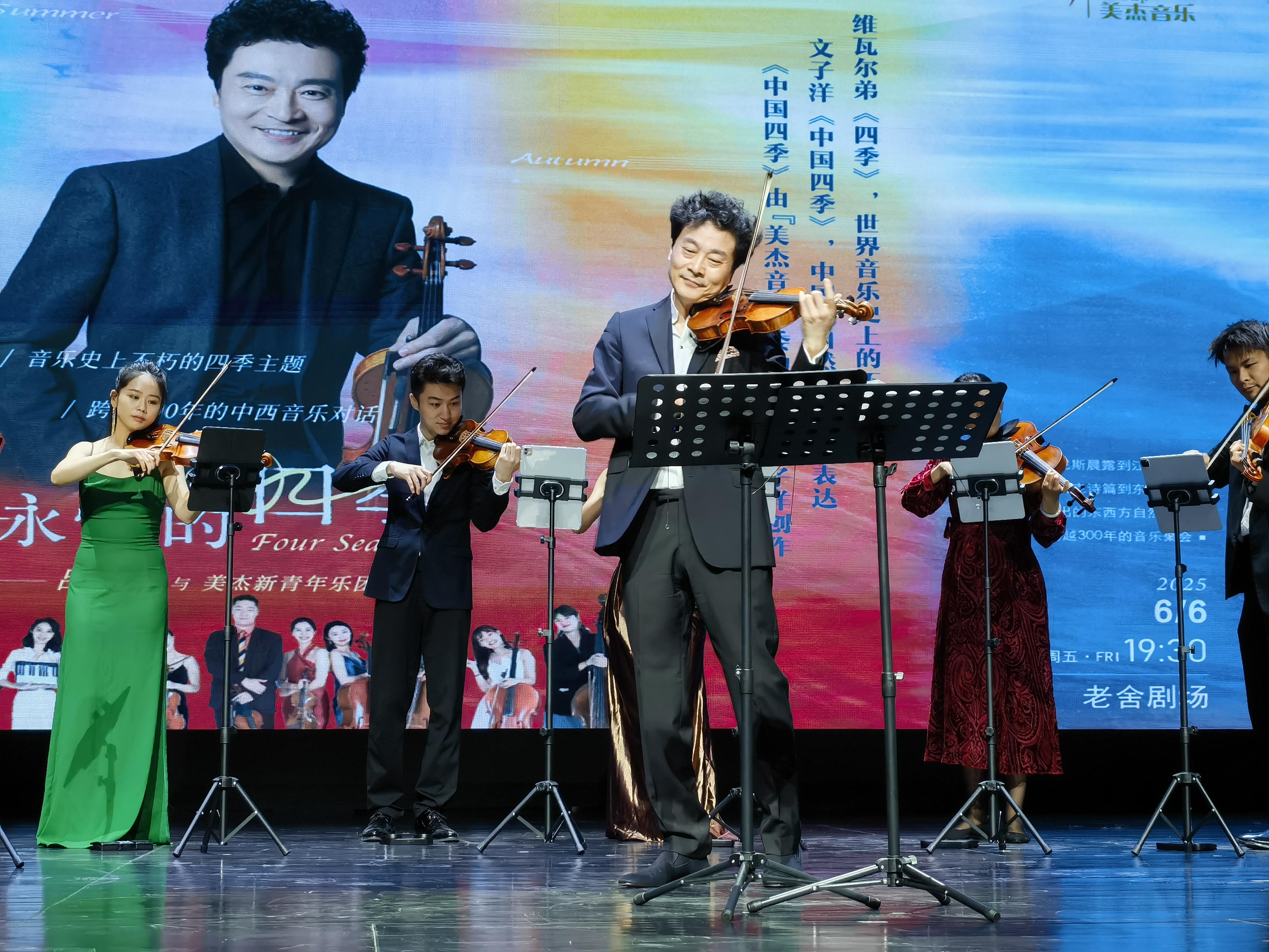 “和著飛快不息的音樂節(jié)拍,四季蹁躚而來,飄然而去——色彩、旋律、芳香匯成不竭的瀑布傾瀉而下,時刻在豐沛的歡樂中飛濺、墜落、消亡”。這是印度詩人泰戈爾在其獲得諾貝爾文學(xué)獎的詩集《吉檀迦利》中發(fā)出的感喟。6月6日,適逢二十四節(jié)氣里唯一直接指導(dǎo)農(nóng)事活動的芒種——“忙種”期間,筆者在北京老舍劇場觀賞《永恒的四季——呂思清與美杰新青年樂團(tuán)音樂會》,對詩人之榮枯慨嘆越發(fā)感同身受。是的,和著節(jié)拍,四季蹁躚若何,泰戈爾的詩意,或許是對足以代言中國新聲音活力前沿的“美杰”版《四季》最好的詮釋。