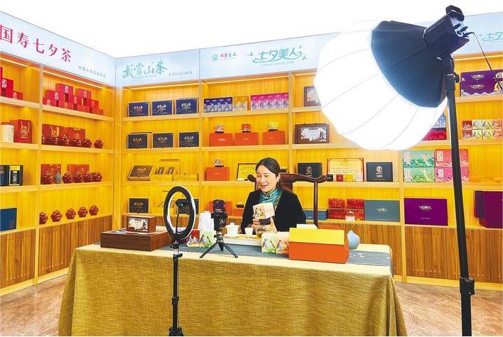 下營村村民正在直播間推介七夕美人茶產(chǎn)品。(受訪者供圖)