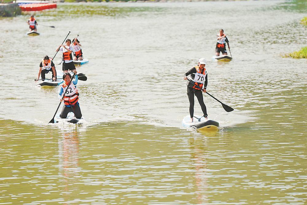 福建省水上運(yùn)動聯(lián)賽(林墩站)比賽期間,選手們劈波斬浪。