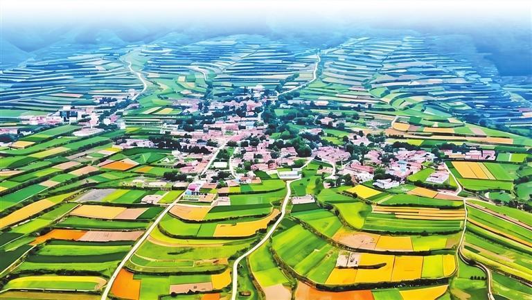 盛夏時(shí)節(jié),走進(jìn)甘肅省蘭州市榆中縣馬坡鄉(xiāng)河灣村,只見(jiàn)遠(yuǎn)山含黛、草木蔥蘢,綠意掩映的山坡上,層層農(nóng)田依山就勢(shì),一座座磚紅色的房屋錯(cuò)落分布。清風(fēng)拂過(guò),涼爽中彌漫著泥土與花草的芬芳,沁人心脾。