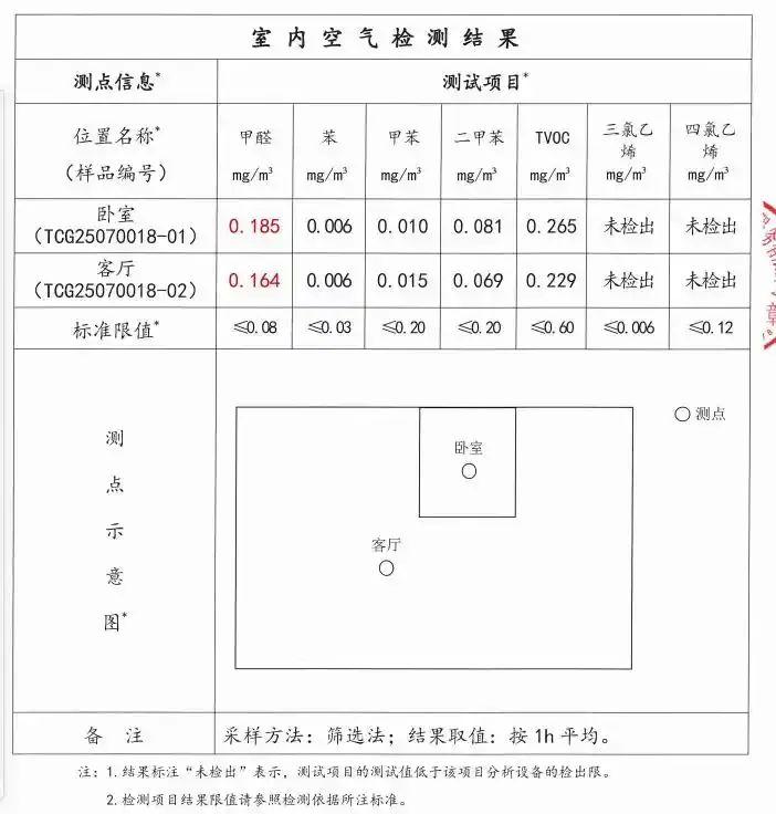 房屋的甲醛檢測結(jié)果