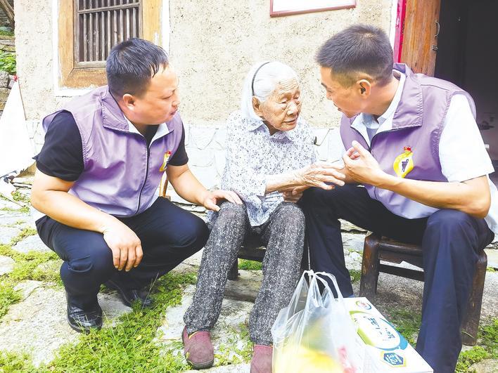 駐村工作隊員看望百歲老人。記者 戴輝 攝