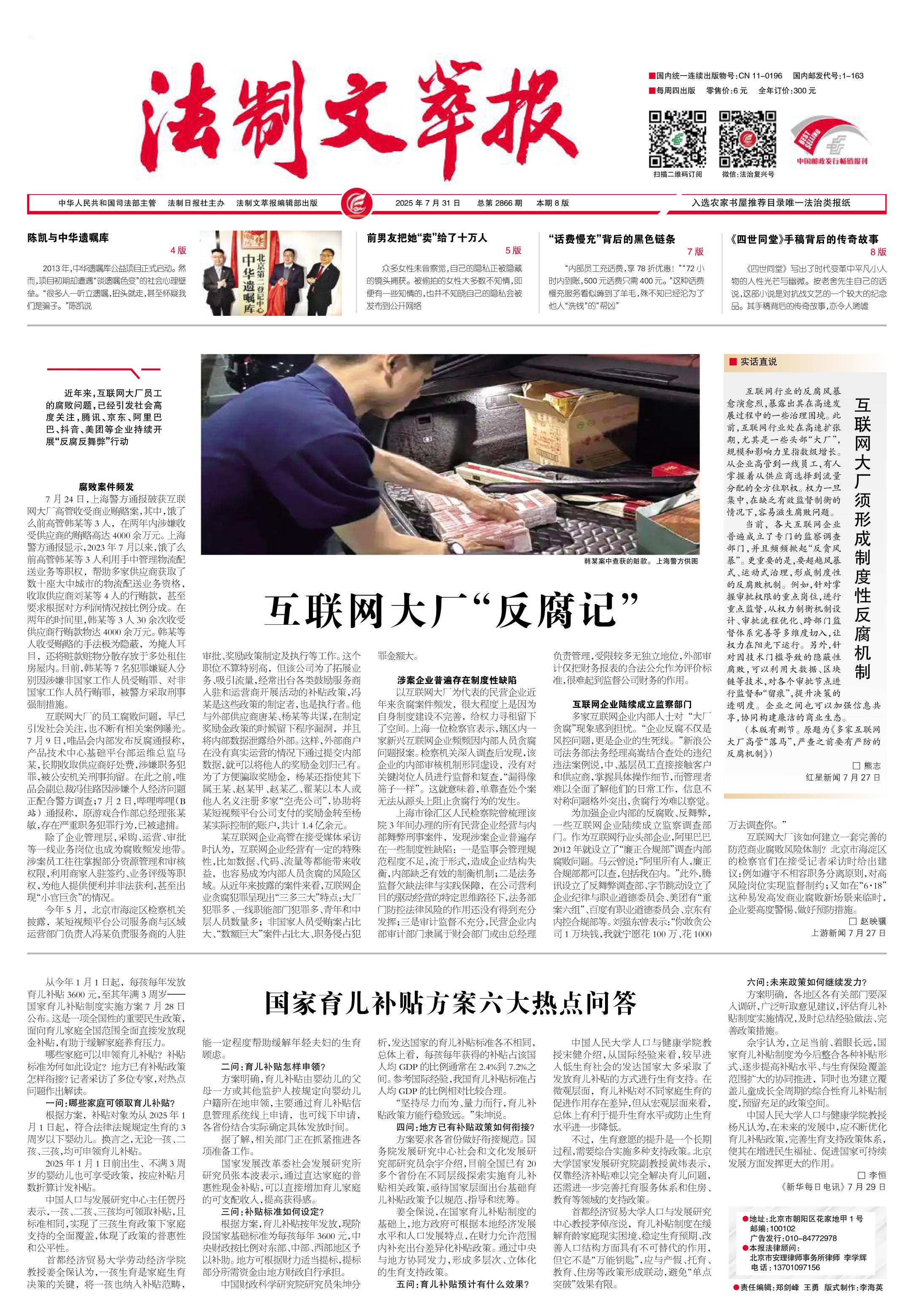 2025年7月31日《法制文萃報》總第2866期1版