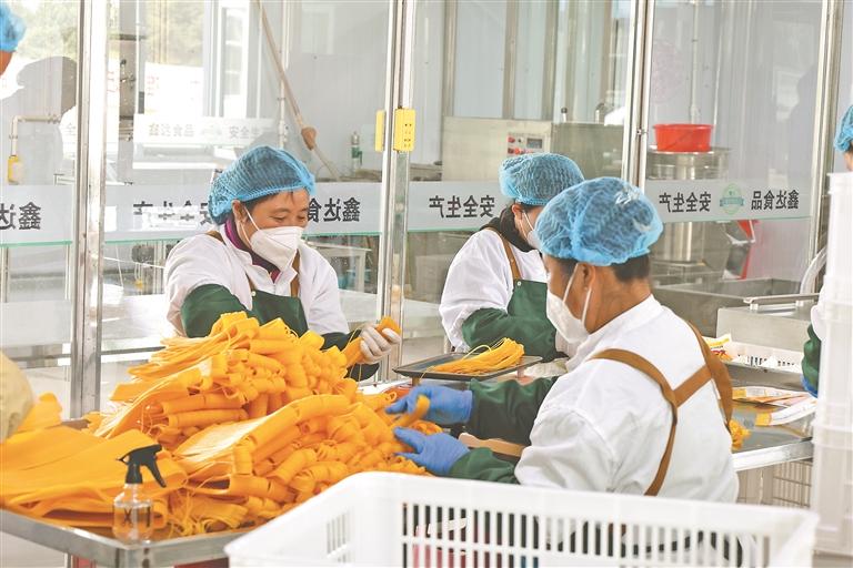 村民在村辦面條廠務工。