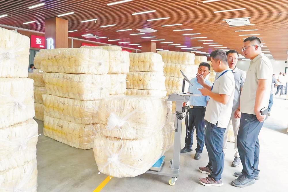 隔壁,做了十幾年食用菌收購的客商陳日鋒正對著大屏幕上的參考行情記錄價格:“過去要跑不同菇農(nóng)家比價、收貨,現(xiàn)在可以一站式采買,誰家的竹蓀品相怎么樣,一眼就能看清,當場過磅,非常方便!這平臺一建,我們收購商和菇農(nóng)都很滿意。”