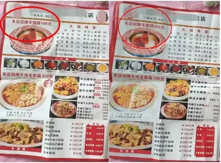 在曝光視頻中,該博主一行人通過對比實測發(fā)現(xiàn),該店針對本地人與外地游客使用“陰陽菜單”,同款“羊圍脖”菜品本地價198元,外地游客價達(dá)298元,價差100元;同時商家宣稱1600克的羊肉,實際兩桌分別僅為1174.5克和1204克,缺斤短兩問題突出。面對質(zhì)疑,餐廳負(fù)責(zé)人竟辯解稱:“咱們當(dāng)?shù)厝司褪钱?dāng)?shù)貎r,外地人有旅行社進(jìn)行溝通。”這種地域歧視性定價更引發(fā)了大眾不滿。