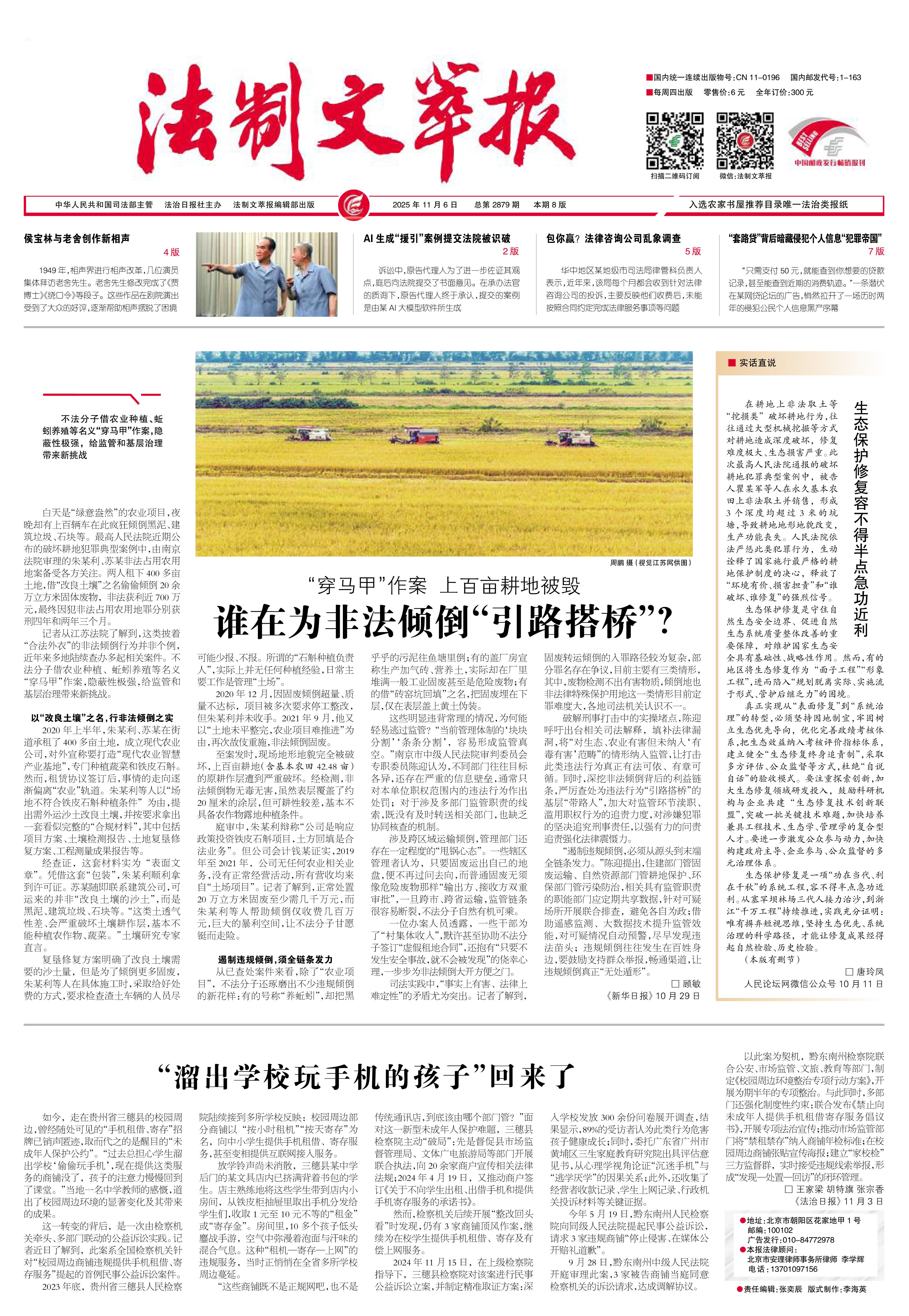 2025年11月6日《法制文萃報》總第2879期1版