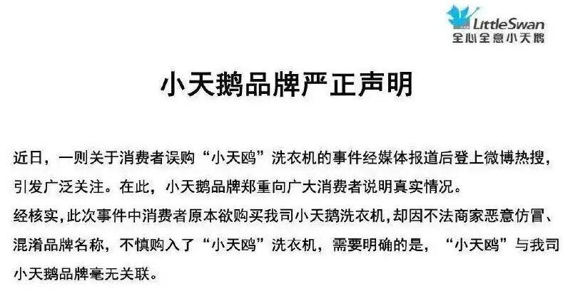 日前,一起由消費(fèi)者誤購(gòu)“小天鷗”洗衣機(jī)引發(fā)的品牌仿冒事件引發(fā)廣泛關(guān)注。