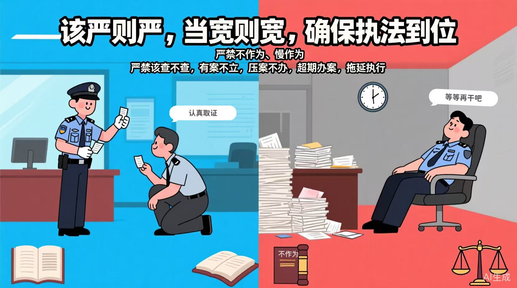 該嚴則嚴,當寬則寬,確保執(zhí)法到位。嚴禁不作為、慢作為。嚴禁該查不查、有案不立、壓案不辦、超期辦案、拖延執(zhí)行。