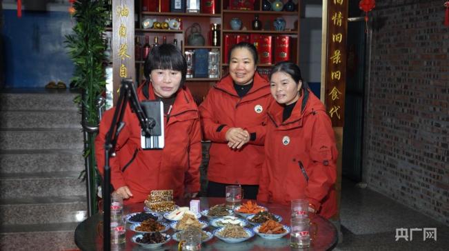 譚新萍和“巾幗直播團(tuán)”直播帶貨(央廣網(wǎng)記者 胡斐 攝)