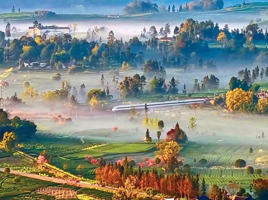 動車穿行晨霧茶山 名山春日美景驚艷全網