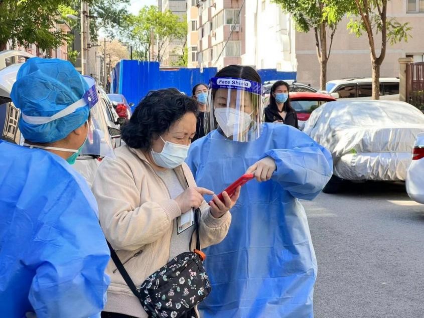 按照支部安排,我們下沉到百萬莊西社區(qū)進行防疫支援,該社區(qū)靠近臨時管控區(qū),彈窗人員較多,老年住戶也居多。在等待核酸檢測的隊伍里不時有人向我們發(fā)問,“姑娘,我去了趟超市被彈窗了,京心相助在哪兒填?”“姑娘,我用的是老年手機,核酸結(jié)果怎么查?”