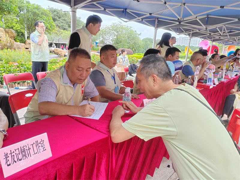 在活動現場,有一隊“志愿馬甲”格外亮眼,他們是來自廣東省信訪春雨志愿服務隊、廣州“穗信連心”志愿服務隊的信訪志愿者,以及來自大德、穗星、廣愛、普愛、北斗星等社工服務機構的信訪社工。他們身著各自特色標識服裝,在現場“擺攤設點”,面對面服務群眾,對有疑問的群眾提供現場咨詢,對有訴求的群眾幫助梳理訴求,以真誠溝通、真情服務換來群眾的滿意點贊。
