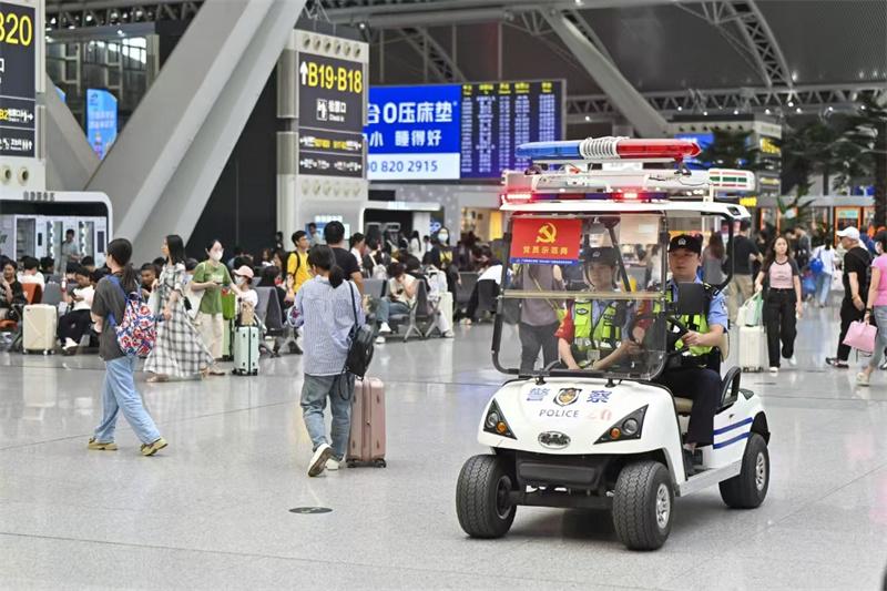 今年端午,“2小時高鐵圈”成為旅客出游主要范圍,粵港澳大灣區(qū)、粵湘兩地、兩廣區(qū)域的中短途線路備受青睞。為凈化出行環(huán)境,廣州鐵路公安處從機關(guān)及所隊調(diào)配近百名警力,部署至廣州南站等客流重點樞紐及重點列車,提升見警率與管事率,嚴厲打擊霸座、猥褻、醉酒滋事,以及盜竊、詐騙等侵害旅客權(quán)益的違法犯罪行為,切實增強旅客出行安全感。