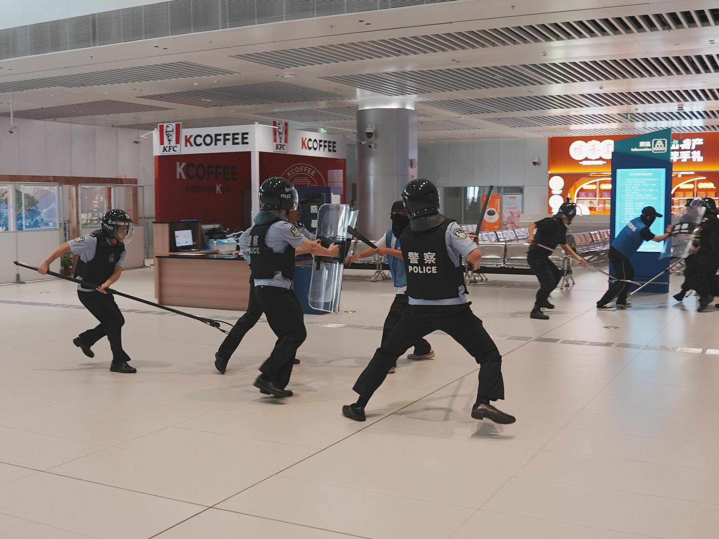 “快反小組立即出動(dòng)處置!”在廣東中山客運(yùn)口岸出境大廳,移民管理警察手持警械聞令而動(dòng),不懼“不法分子”的暴力攻擊,迅速對(duì)其進(jìn)行控制。