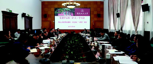 本報訊 記者余東明 2月1日,華東政法大學在長寧校區(qū)圓桌會議室召開黨委中心組(擴大)學習會,傳達上海市“兩會精神”,討論學?!笆奈濉币?guī)劃,共謀一流政法大學建設藍圖。華東政法大學領(lǐng)導和黨委常委及“十四五”規(guī)劃編寫組成員現(xiàn)場參會,各學院黨委(黨總支、直屬黨支部)書記、院長通過在線分會場參會。華東政法大學黨委書記郭為祿主持會議。 結(jié)合學習情況和學?!笆奈濉币?guī)劃實際,郭為祿對編制工作提出三方面要求:首先要繼續(xù)學深悟透,要繼續(xù)扎實深入學習習近平新時代中國特色社會主義思想,尤其是習近平法治思想、習近平總書記關(guān)于教育的重要論述和在上??疾鞎r的重要講話精神。同時還要學習上海市“十四五”規(guī)劃征求意見稿等文件精神,把學?!笆奈濉币?guī)劃與中央和上海市的相關(guān)精神對標對表,做好頂層設計,著眼新發(fā)展格局;其次要做好貫徹落實,緊密結(jié)合各方面工作實際,上下貫通、左右逢源,運用好系統(tǒng)思維,學院規(guī)劃要擺在學校規(guī)劃里、學校規(guī)劃要擺在法治中國和上海市規(guī)劃建設中,緊抓大學的初心使命和根本任務,把為黨育人、為國育才的人才培育作為辦學第一要事,拿出特色“+法學”,分類發(fā)展、特色發(fā)展,培育德法兼修的法治人才;最后要切實做細做實,學校“十四五”規(guī)劃要前后有銜接,學校定位務必要準確、目標務必要明確,改革舉措有力度,具體措施有操作性,規(guī)劃清晰直接、引領(lǐng)性明確。