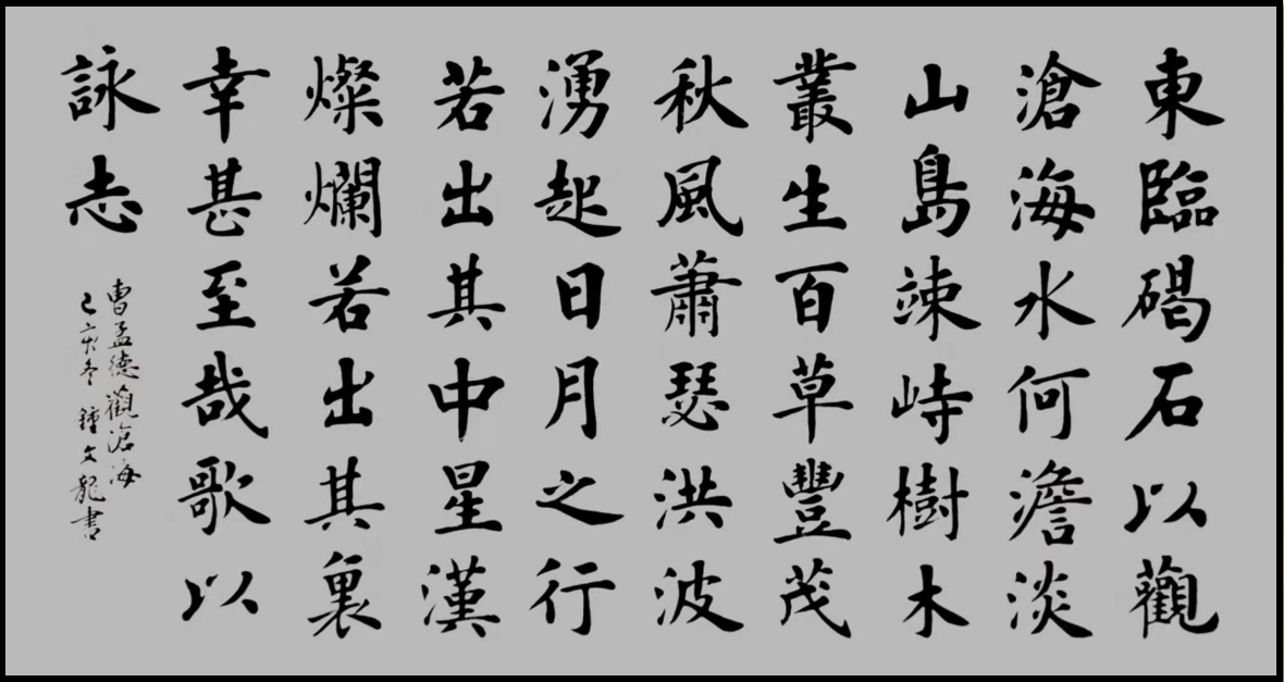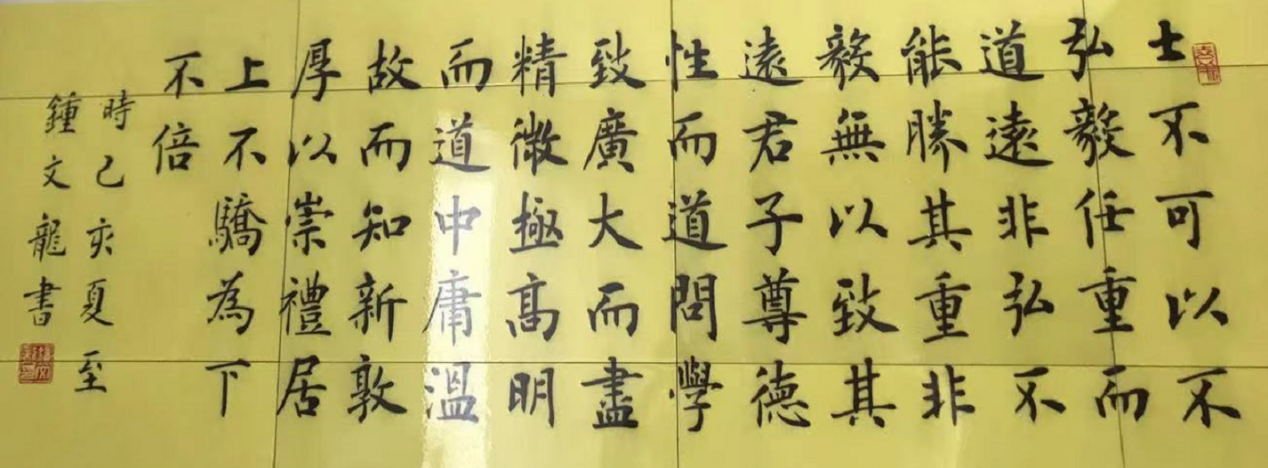 2010年,鐘文龍拜盧中南先生為師,由于自身基礎(chǔ)牢固加之得到名師指點(diǎn),其楷書(shū)技藝得以迅速提高,大幅飛躍。