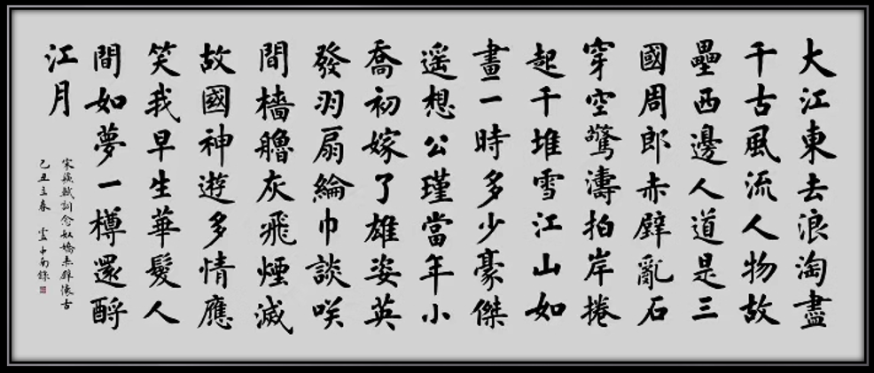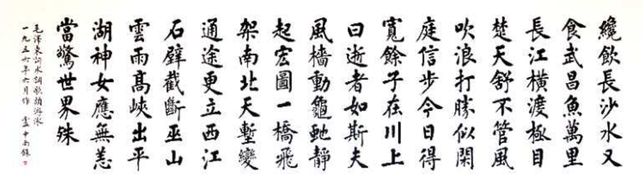 盧中南先生能夠從古法中孕育新知,推陳出新,將歐楷的險(xiǎn)絕化為溫潤(rùn),在傳承中不斷創(chuàng)新,形成了雄強(qiáng)厚重、磅礴大氣的個(gè)人風(fēng)格。