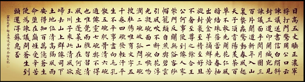 鐘文龍自幼習(xí)書(shū),曾醉心于王羲之小楷,得盧中南先生的真?zhèn)骱螅妓嚾諠u純熟,在國(guó)內(nèi)楷書(shū)領(lǐng)域形成了自己的獨(dú)特風(fēng)格。其書(shū)風(fēng)古樸敦厚,靈動(dòng)秀雅。