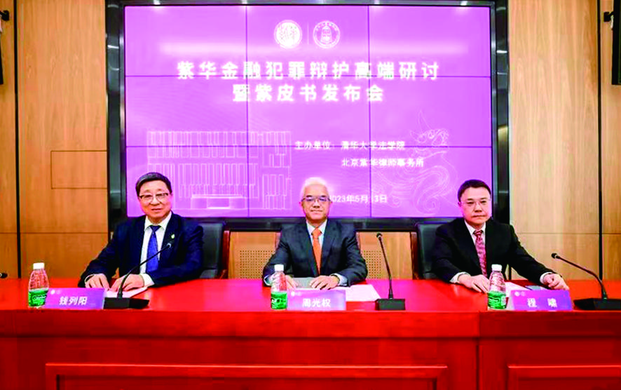 5月13日,由清華大學(xué)法學(xué)院、北京紫華律師事務(wù)所共同主辦的紫華金融犯罪辯護(hù)高端研討暨紫皮書發(fā)布會在清華大學(xué)舉行。清華大學(xué)法學(xué)院院長周光權(quán)、北京紫華律師事務(wù)所主任錢列陽出席會議并致辭,清華大學(xué)法學(xué)院副院長程嘯主持,來自各界代表圍繞“金融犯罪的發(fā)展態(tài)勢及法律應(yīng)對”這一主題展開探討。會議期間,清華大學(xué)法學(xué)院紫華國際學(xué)術(shù)報(bào)告廳揭牌儀式同期舉行。