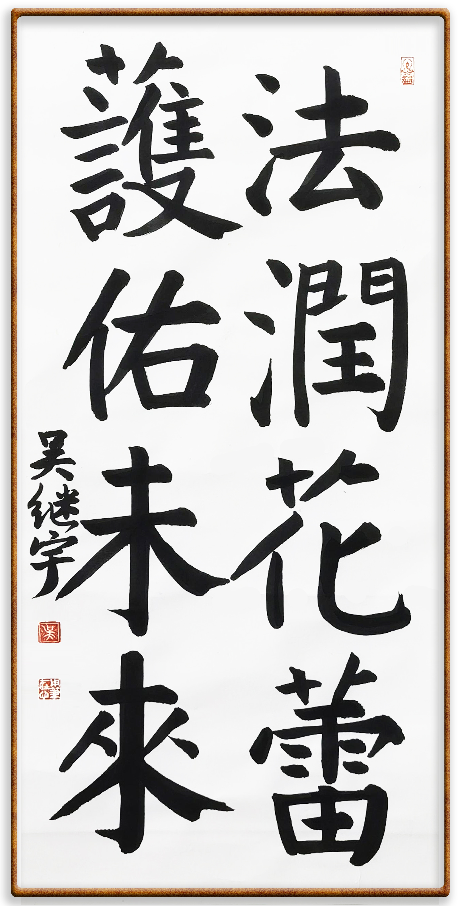 原文:法潤花蕾,護佑未來。