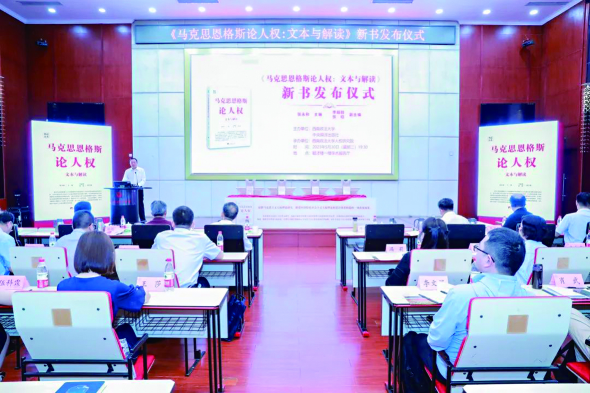 5月30日,由中央編譯出版社出版發(fā)行的《馬克思恩格斯論人權:文本與解讀》新書發(fā)布儀式在西南政法大學舉行。該書由西南政法大學人權研究院教授張永和主編,于2018年開始啟動編撰,歷時近5年,全書共31萬字。導論部分對馬克思主義人權思想的形成發(fā)展進行梳理,主題部分選取30篇集中展現(xiàn)馬克思恩格斯人權思想的經(jīng)典著作,在保證原文論述邏輯結構連貫的前提下,摘選其中重要的人權論述,并加以逐段解析,對馬克思主義人權思想經(jīng)典理論的本相與全貌進行了努力還原。