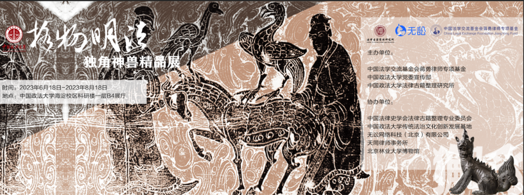 6月21日,“格物明法:獨角神獸精品展”開展式在中國政法大學(xué)海淀校區(qū)舉行。展覽由中國法學(xué)交流基金會蔣勇律師專項基金、中國政法大學(xué)黨委宣傳部、法律古籍整理研究所共同主辦,中國法律史學(xué)會法律古籍整理專業(yè)委員會、中國政法大學(xué)傳統(tǒng)法治文化創(chuàng)新發(fā)展基地、無訟網(wǎng)絡(luò)科技(北京)有限公司、天同律師事務(wù)所和北京林業(yè)大學(xué)博物館等單位協(xié)辦。