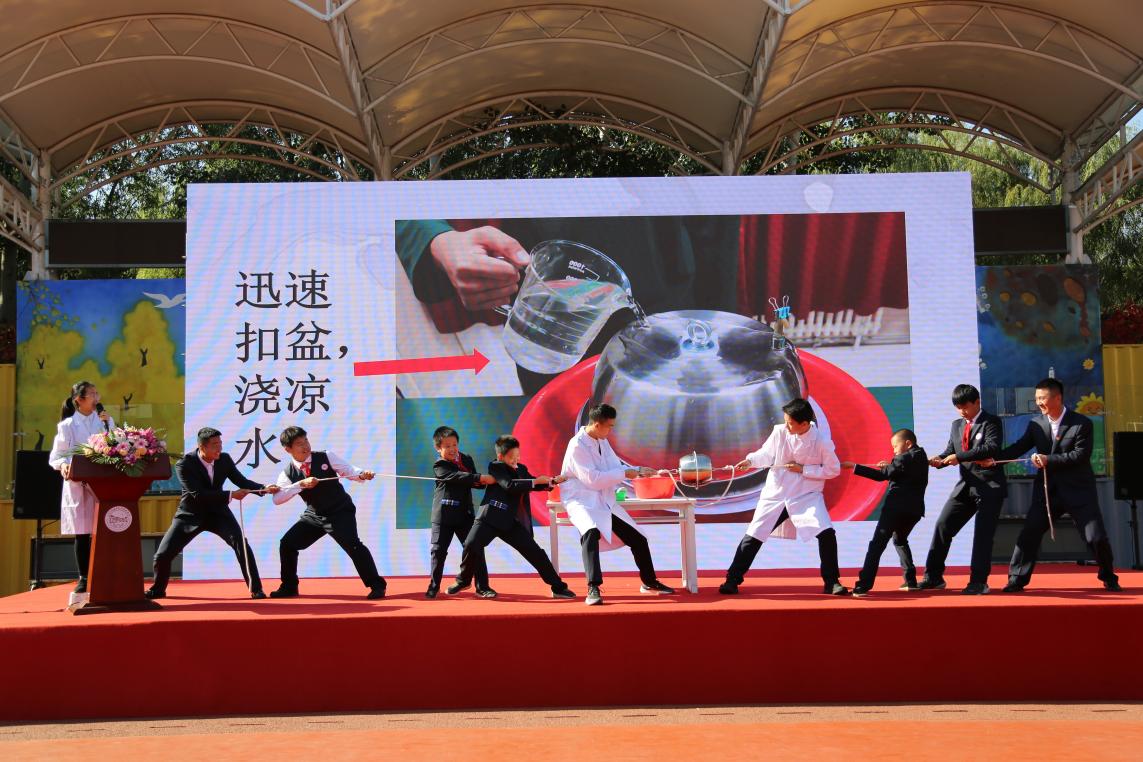 這場嘉年華啟動(dòng)儀式上,中小學(xué)科技課程、科技戲劇、人工智能展演成為了焦點(diǎn),從奮力沖上蒼穹的“水火箭”,到馬德堡半球?qū)嶒?yàn)的再現(xiàn),再到機(jī)器人的舞蹈表演,每一個(gè)科學(xué)實(shí)驗(yàn)都在孩子們歡喜的尖叫聲中揭開神秘面紗。參加科學(xué)實(shí)驗(yàn)展演的孩子們個(gè)個(gè)眼光中充滿了自信和希望,沉著冷靜、默契配合,詮釋科學(xué)實(shí)驗(yàn)、科學(xué)反應(yīng)、科學(xué)原理或科研創(chuàng)新成果及技術(shù)。