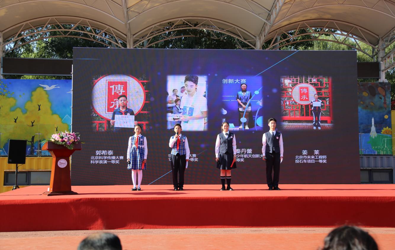 活動(dòng)現(xiàn)場,分別獲得2021年第三屆北京科學(xué)傳播大賽中榮獲科學(xué)表演團(tuán)體一等獎(jiǎng)、2023年北京市未來工程師競賽小學(xué)組一等獎(jiǎng)、2022年世界機(jī)器人大賽總決賽挑戰(zhàn)賽一等獎(jiǎng)、2023全國青少年航天創(chuàng)新大賽二等獎(jiǎng)的四名學(xué)生代表郭希泰、劉嘉樂、秦丹蕾、姜萊,分享了參加科技活動(dòng)的經(jīng)歷與心得體會(huì)?!懊恐軆晒?jié)的科學(xué)課點(diǎn)燃了我們的太空夢”“在一次次賽前集訓(xùn)中,通過老師帶領(lǐng)我們查找資料、研究原理、設(shè)計(jì)作品等動(dòng)手實(shí)踐活動(dòng),我提高了綜合運(yùn)用知識(shí)的能力和創(chuàng)造性解決問題的能力”“曾經(jīng)基礎(chǔ)科學(xué)知識(shí)薄弱的我,各種提問占用老師很多時(shí)間,老師卻總是表揚(yáng)我虛心求教的態(tài)度”“在討論比賽項(xiàng)目時(shí),我們在相互提問中碰撞思維的火花,我學(xué)會(huì)了如何傾聽、如何溝通”……學(xué)生們認(rèn)為,他們科學(xué)興趣的激發(fā)、科學(xué)探究能力的提升、科技實(shí)踐能力的強(qiáng)化、科技探索之路的開啟,離不開學(xué)校豐富的科技教育課程、科技競賽平臺(tái)的搭建、老師的悉心教導(dǎo)與鼓勵(lì)、小組的合作探究。