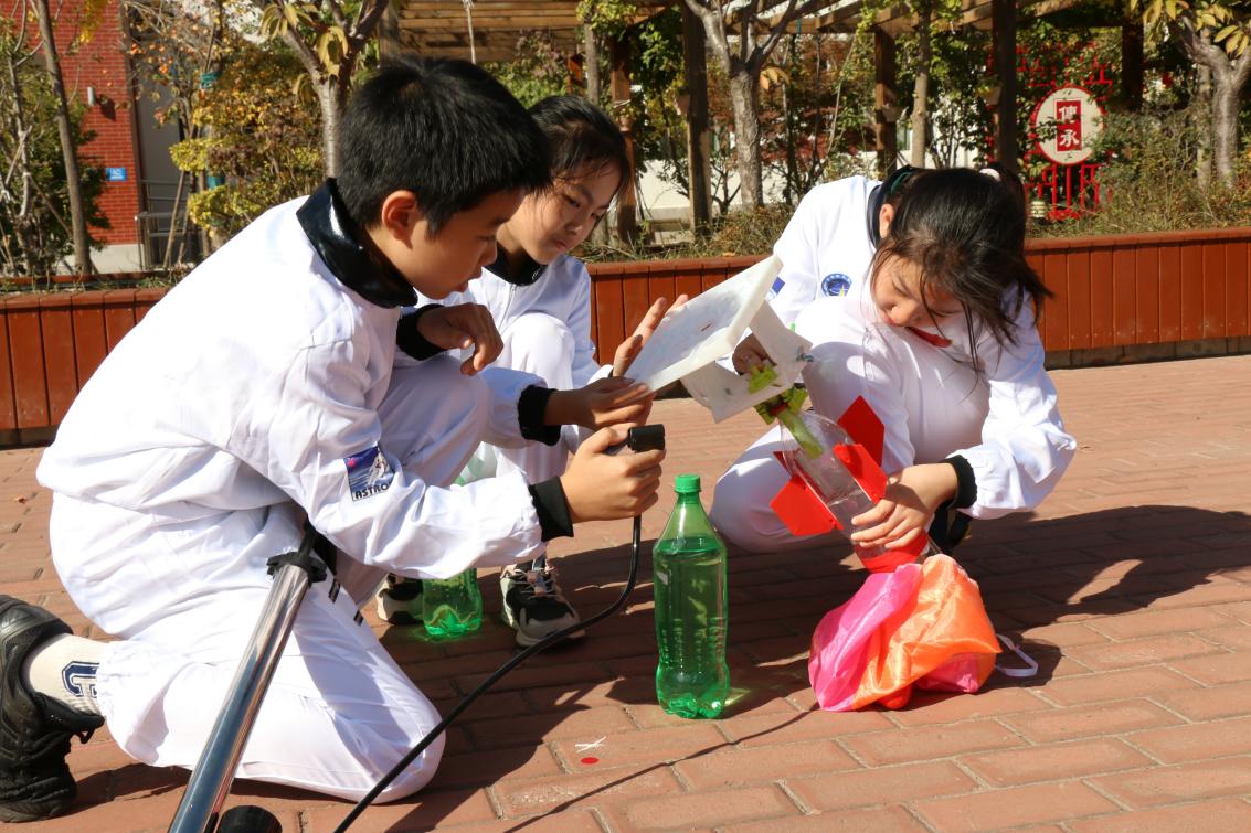 10月27日,一艘艘“水火箭”在北京市朝陽區(qū)將府實(shí)驗(yàn)學(xué)校(以下簡稱將府學(xué)校)操場北側(cè)凌空飛起,孩子們的航天夢、科技?jí)粢搽S之起飛……
