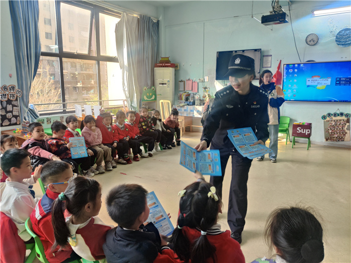 (1月15日下午,鎮(zhèn)海派出所社區(qū)民警到劍橋雙語幼兒園開展“小手拉大手”安全教育宣傳活動(dòng))