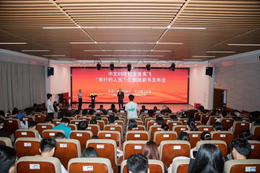 6月18日上午,長沙理工大學(xué)95級校友、知名文學(xué)家和財經(jīng)作家曾高飛長篇小說《前行的人生》三部曲新書發(fā)布會在長沙理工大學(xué)云塘校區(qū)舉行。中央文史館館員、中國文學(xué)藝術(shù)界聯(lián)合會原副主席仲呈祥,作家出版社副總編輯顏慧,長沙理工大學(xué)黨委委員、副校長談傳生等出席發(fā)布會。發(fā)布會由長沙理工大學(xué)文學(xué)與新聞學(xué)院教授、湖南省政府參事成松柳主持。