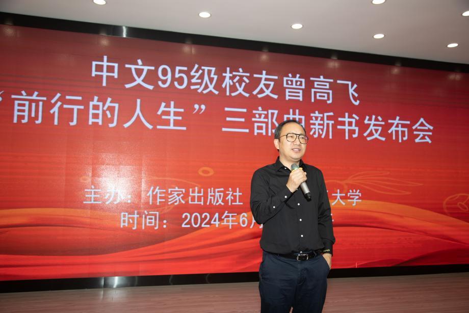 談傳生致活動開幕辭。他對曾高飛《前行的人生》三部曲的內(nèi)容梗概進行了大致介紹,并給予了高度評價。他細(xì)數(shù)了學(xué)校辦學(xué)多年來在人文社科領(lǐng)域涌現(xiàn)的一大批開拓創(chuàng)新型人才,并號召在場同學(xué)們學(xué)習(xí)杰出校友堅持理想、深耕專業(yè)的精神,奮力譜寫出屬于自己的青春篇章。