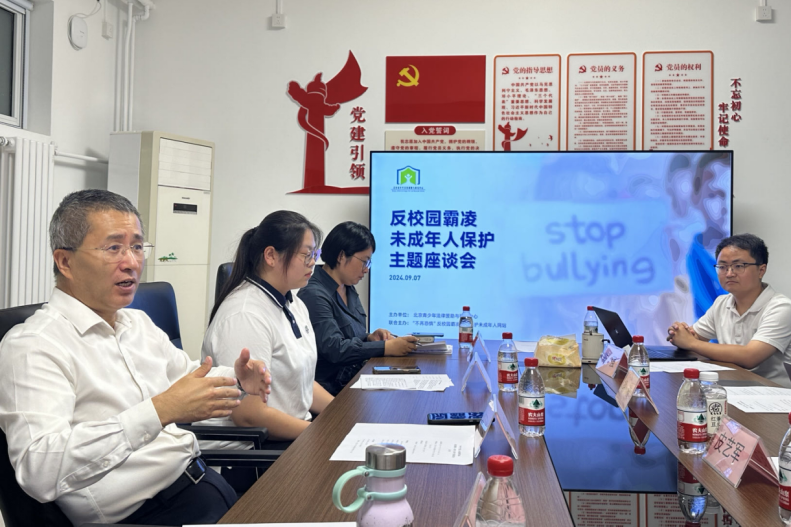 9月7日,以“反校園霸凌 未成年人保護(hù)”為主題的座談會(huì)在北京青少年法律援助與研究中心舉辦。法學(xué)專家、法律援助律師、心理專家、學(xué)生與家長代表們圍繞校園霸凌行為的危害性、法律救濟(jì)的理論與實(shí)踐,深入交流研討,集實(shí)招、謀良策,引導(dǎo)社會(huì)各界共同守護(hù)青春校園與未成年人健康成長。