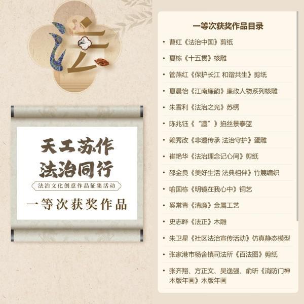 為深入實施蘇州市“八五”普法規(guī)劃,推動法治文化與非物質文化遺產深度融合發(fā)展,今年,江蘇省蘇州市委宣傳部、蘇州市司法局、蘇州市文化廣電和旅游局、蘇州市文學藝術界聯合會以“天工蘇作 法治同行”為主題在全市開展了法治文化創(chuàng)意作品征集活動,積極探索創(chuàng)新法治宣傳形式,讓法治精神和法治信仰深入人心。