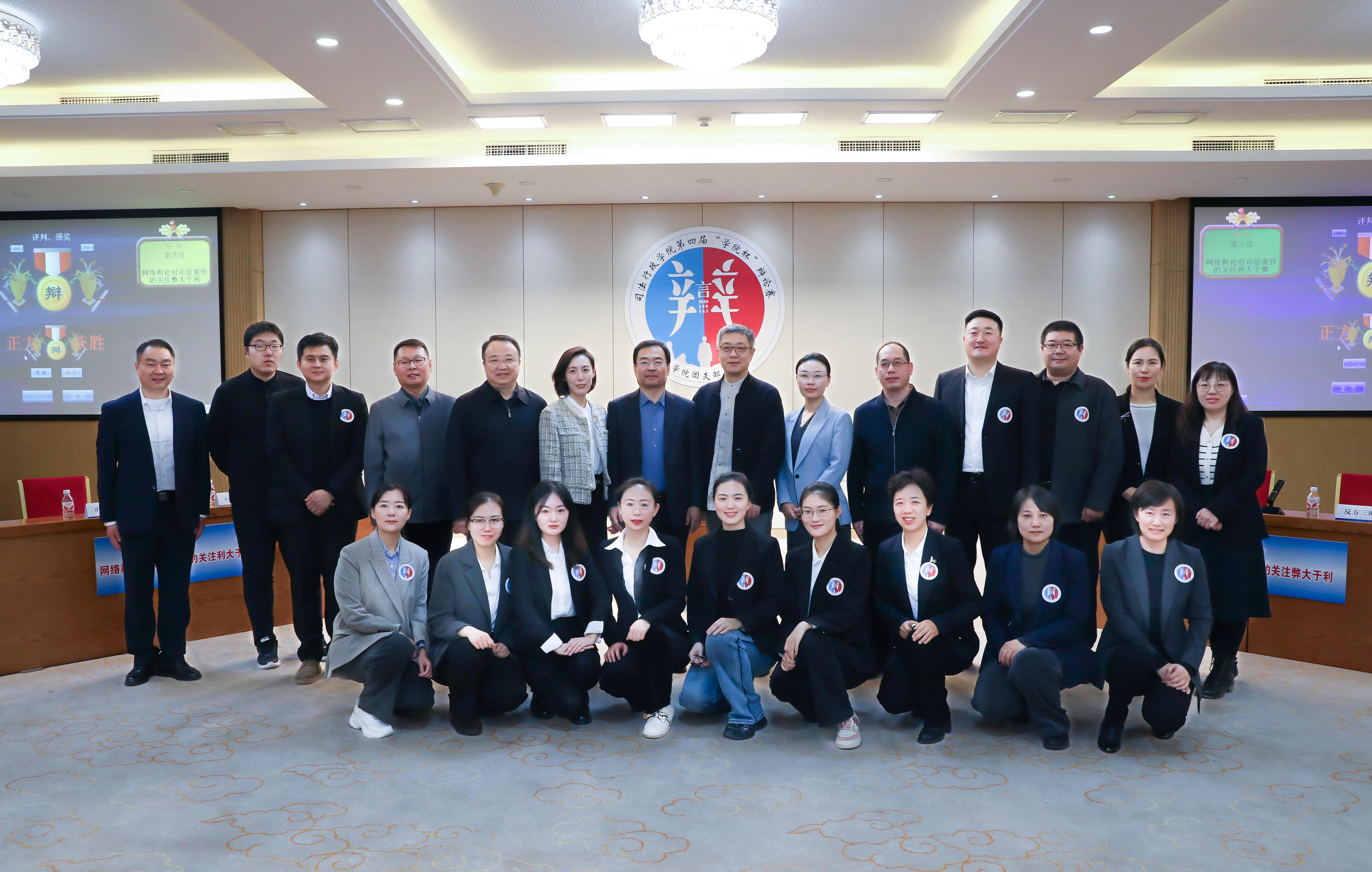 11月22日,司法行政學院四支強隊上演冠亞季軍爭奪戰(zhàn)。季軍爭奪賽和冠亞軍決賽,分別圍繞“慶祝傳統(tǒng)節(jié)日更應保持原汁原味還是更應勇于吐故納新”“網(wǎng)絡(luò)輿論對司法案件的關(guān)注利大于弊還是弊大于利”兩個主題進行了辯論。每場正、反兩方各上場四名隊員,設(shè)置立論陳詞、提問攻辯、攻辯小結(jié)、自由辯論及總結(jié)陳詞五個環(huán)節(jié)。