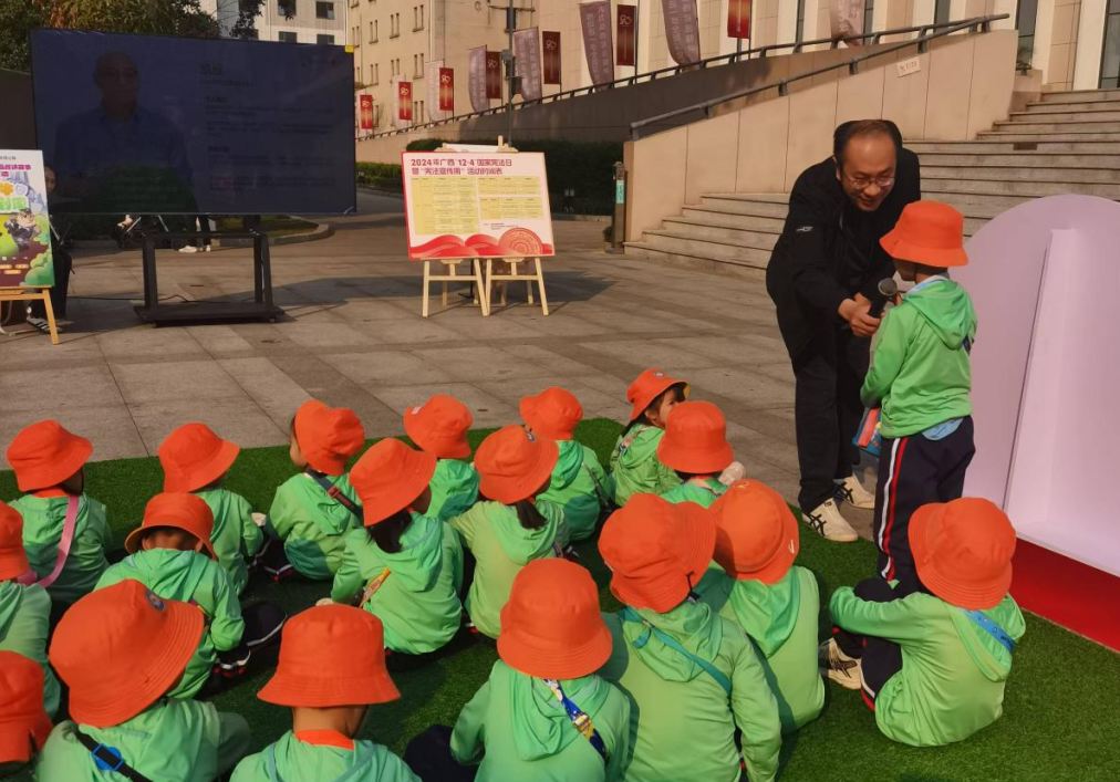 受廣西壯族自治區(qū)司法廳的邀請,中國法治出版社攜手凱叔講故事,在2024年廣西壯族自治區(qū)“12·4”國家憲法日暨憲法宣傳周活動主會場戶外——自治區(qū)博物館南廣場,舉辦了“當(dāng)法律遇上故事”主題普法活動,共同關(guān)愛保護(hù)未成年人健康成長。