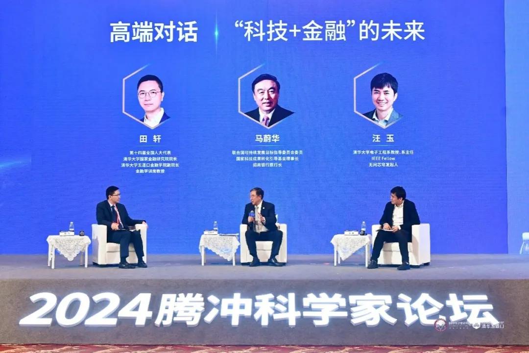 “‘科技+金融’的未來”高端對話環(huán)節(jié),第十四屆全國人大代表、清華大學(xué)國家金融研究院院長、清華大學(xué)五道口金融學(xué)院副院長、金融學(xué)講席教授田軒,聯(lián)合國可持續(xù)發(fā)展目標(biāo)指導(dǎo)委員會委員、國家科技成果轉(zhuǎn)化引導(dǎo)基金理事長、招商銀行原行長馬蔚華,清華大學(xué)電子工程系教授、系主任,IEEE Fellow,無問芯穹發(fā)起人汪玉分別發(fā)表觀點(diǎn)。