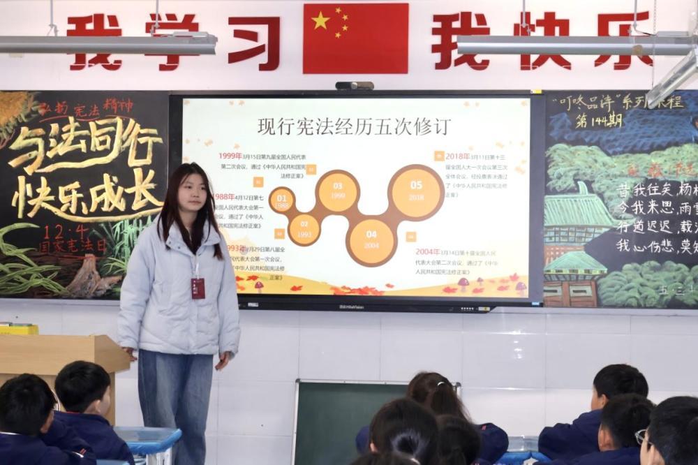 宣講團走進曲江第十四小學、郭杜小學等校園,通過生動有趣的憲法課堂,講解憲法原則、公民權(quán)利義務等內(nèi)容,結(jié)合真實案例和互動問答,有效提升了青少年的憲法意識和法治觀念。