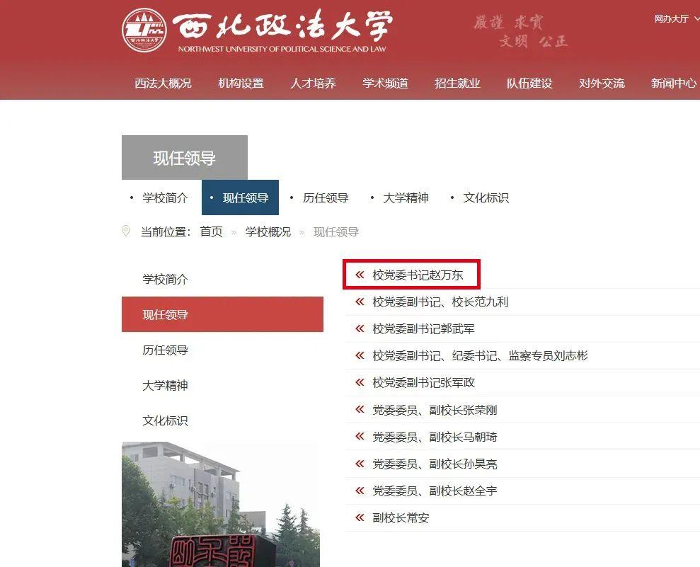 近日,根據(jù)西北政法大學(xué)官網(wǎng)發(fā)布的更新顯示,此前擔(dān)任咸陽師范學(xué)院黨委書記的趙萬東,已調(diào)任西北政法大學(xué)黨委書記。
